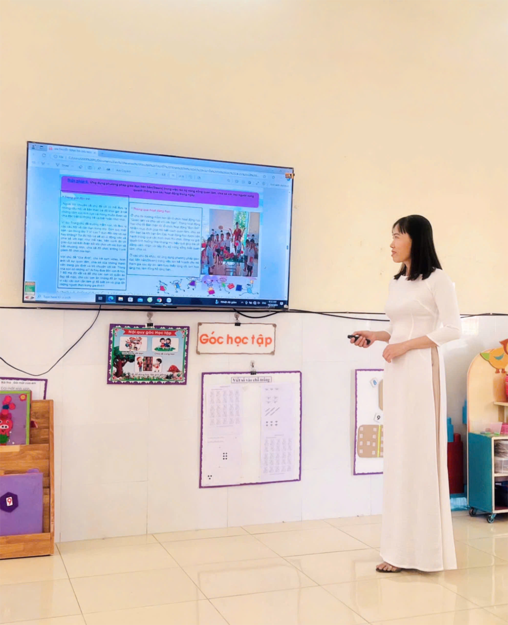 Nhà trường đã chỉ đạo các tổ chuyên môn có kế hoạch bồi dưỡng chuyên môn cho các thành viên trong tổ, hướng dẫn cách xây dựng bài thuyết trình và cách trình bầy bài thuyết trình trước Hội đồng chấm thi. Từ đó giúp giáo viên tự trau dồi kiến thức chăm sóc giáo dục trẻ, năng khiếu diễn đạt, tự tin trình bầy trước hội đồng Ban giám khảo đề tài của mình một cách có hiệu quả.