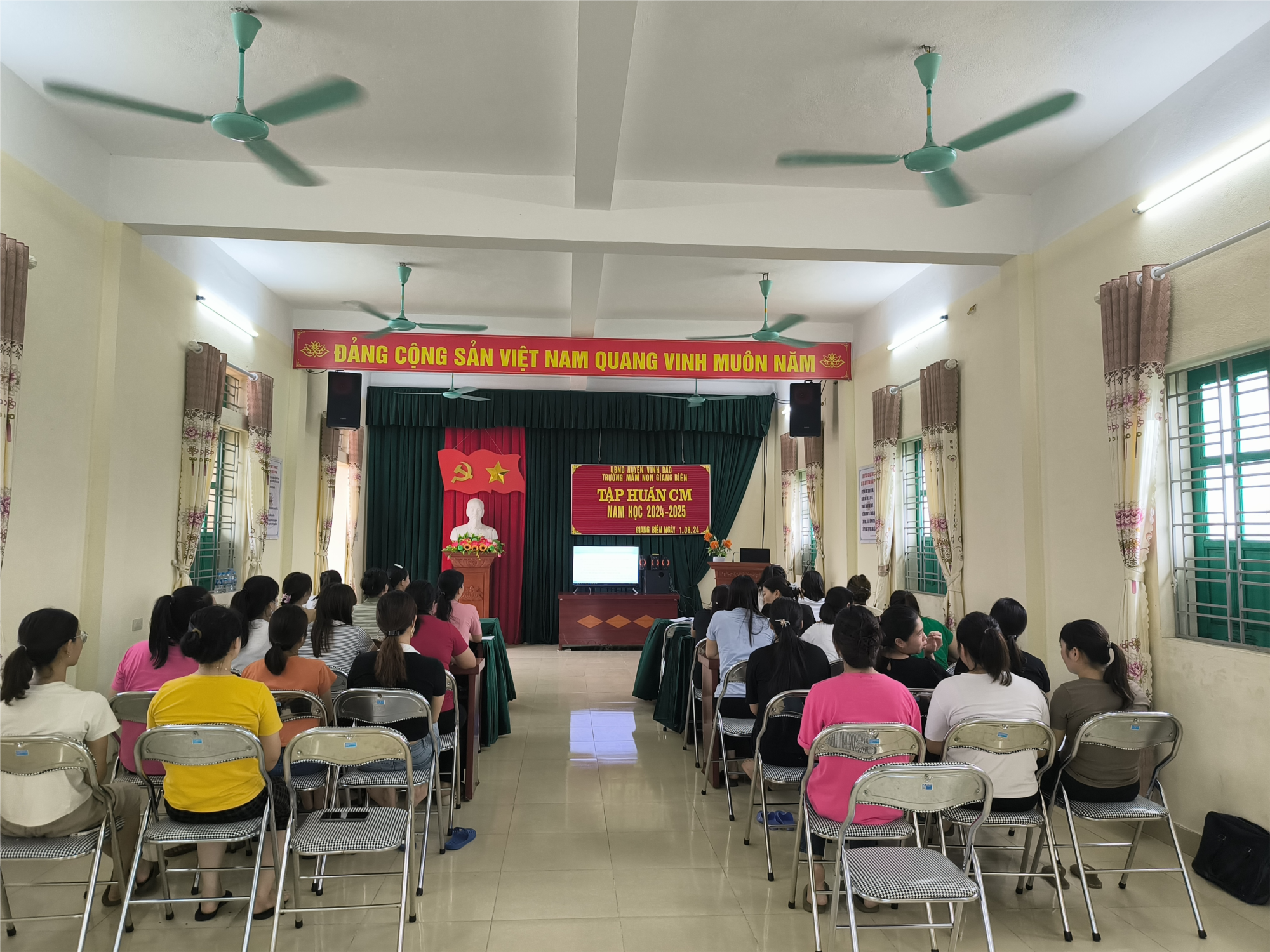 Sáng ngày 01/08/2024 tại hội trường trường mầm non Giang Biên đã diên ra hội nghị tập huấn chuyên môn hè cho 100% các đồng chí cán bộ giáo viên nhân viên trong nhà trường. Thời gian tập huấn diễn ra trong 2 ngày từ ngày 01/08 đến hết 02/08/2024.