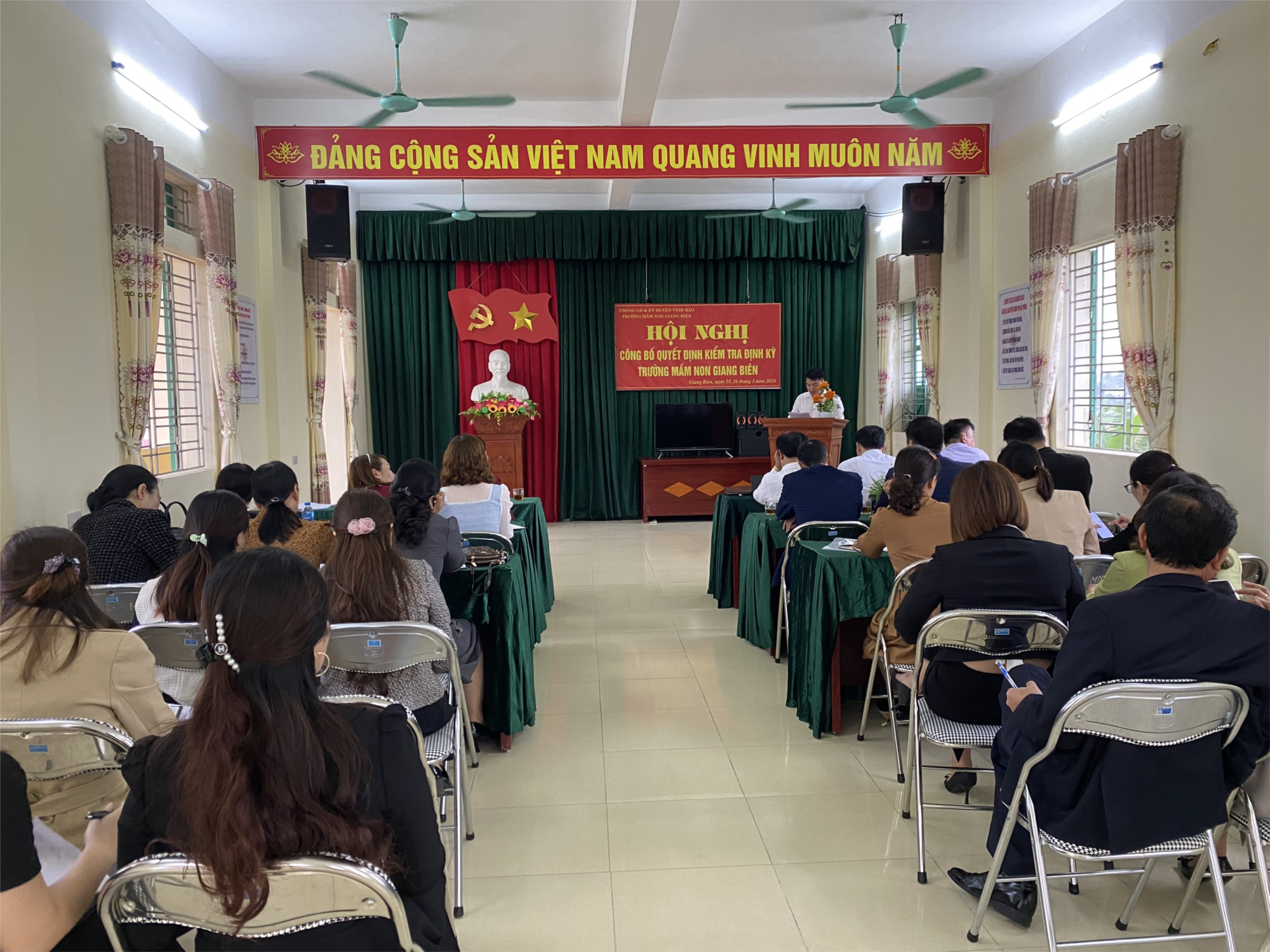 Thực hiện Quyết định số 233/QĐ- PGD&ĐT ngày 19/03/2024 của Phòng Giáo dục và Đào tạo Huyện Vĩnh Bảo về việc kiểm tra định kì đối với trường Mầm non Giang Biên.