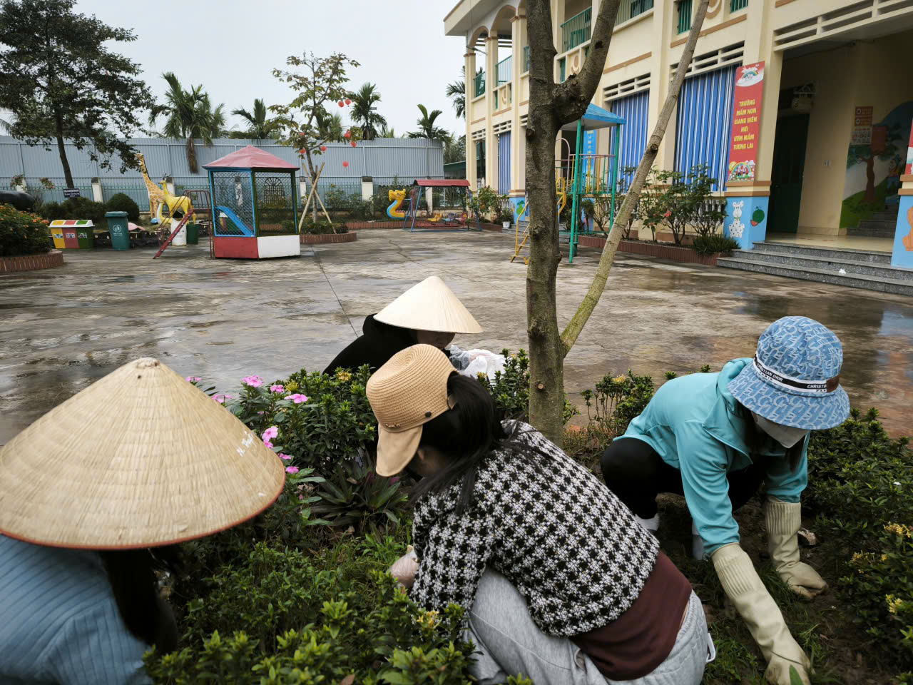 Với sự nhiệt tình của đội ngũ cán bộ, giáo viên và nhân viên, tập thể nhà trường đã tiến hành dọn dẹp, làm sạch toàn bộ khuôn viên, chăm sóc cây cảnh tại các khu và điểm trường. Mọi góc sân, khoảng trời của các bé đều được chăm chút kỹ lưỡng, đảm bảo môi trường an toàn, thân thiện để sẵn sàng đón các con trở lại trường sau kỳ nghỉ Tết.