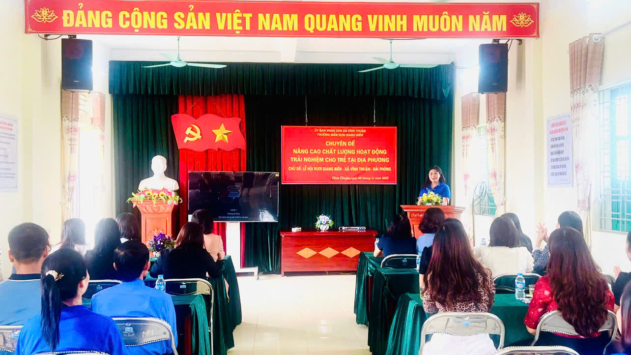 Tại chuyên đề, các Đại biểu được lắng nghe đ/c Nguyễn Thị Thanh Hòa- Bí thư chi bộ – Hiệu trưởng nhà trường lên phát biểu khai mạc chuyên đề: Nâng cao chất lượng hoạt động trải nghiệm tại địa phương chủ đề: “Lễ hội Rươi Giang Biên – Xã Vĩnh Thuận – TP Hải Phòng”. Và báo cáo kết quả thực hiện chuyên đề.
