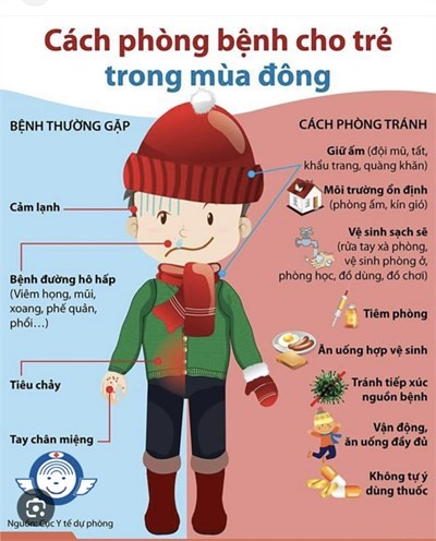 2. Giữ ấm cơ thể khi thời tiết chuyển lạnh; ủ ấm cho trẻ em khi đi xe máy, khi ra ngoài trời; khi làm việc ngoài trời, ra ngoài trời vào ban đêm, sáng sớm phải mặc đủ ấm, lưu ý giữ ấm bàn chân, bàn tay, ngực, cổ, đầu.